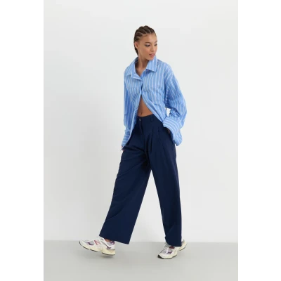 WIDE-LEG WITH BUTTONS - Trousers - mottled light brown